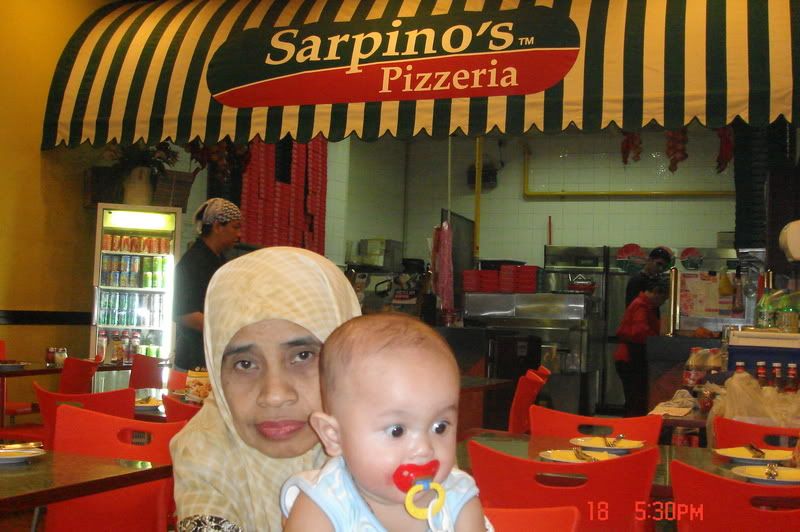 Yesterday, i was craving for lasagne for quite awhile already. So i called my mom, together with baby and my hubby, we went to eat at Sarpino's Pizza. It is located at Eastpoint. I was excited coz I saw it being promoted in one of Akak Sri Wahyuni's food programme.