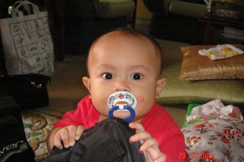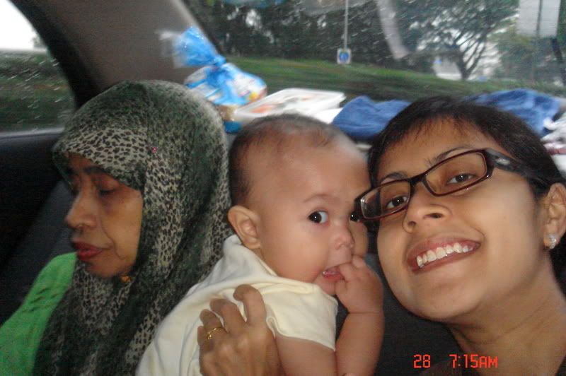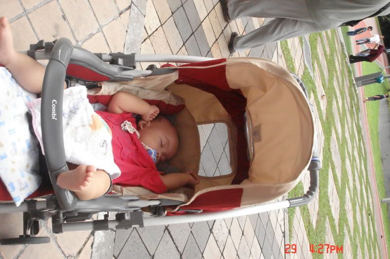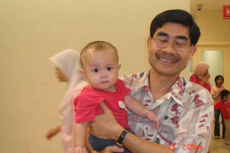 we did some shopping for myself, nursabilah and mama at Sogo and had lunch there. i wailed and demanded my fair share of lunch. so abah bought me a salt-less rice porridge with fish. after that i kept quiet and smiled. we left the err.. Sogo and headed to somewhere else. Again abah had to follow the car.