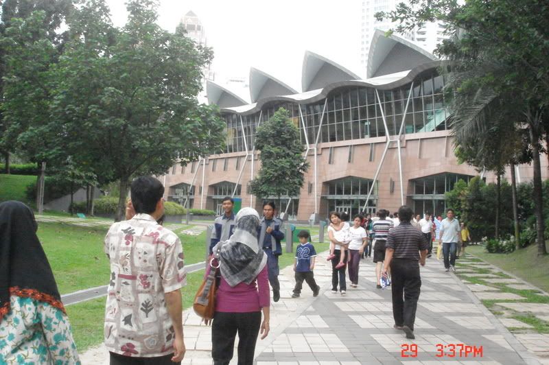 she was going nuts. atok alang suggested to go to the fountain area and convention hall coz they have some home exhibition. i couldn't be bothered though. the place was busy with people and cramped. i cried and cried. mama and abah and my grandparents searched for the exit. imagine an only exit five blocks away --- lunatics!